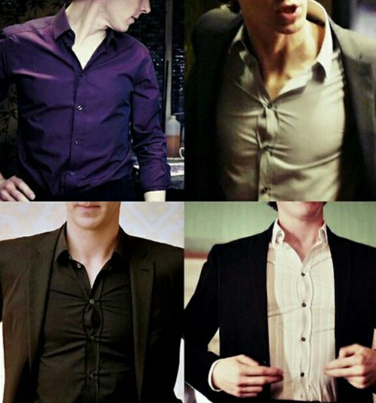 Dolce and Gabbana Main-line Dress Shirtin 100% cotton and slim fit. Although Sherlock wears several different shirts throughout the series, it appears to be 'THE Purple Shirt', which has captured people's imaginations - and happens to be the most costly of his dress shirts too.